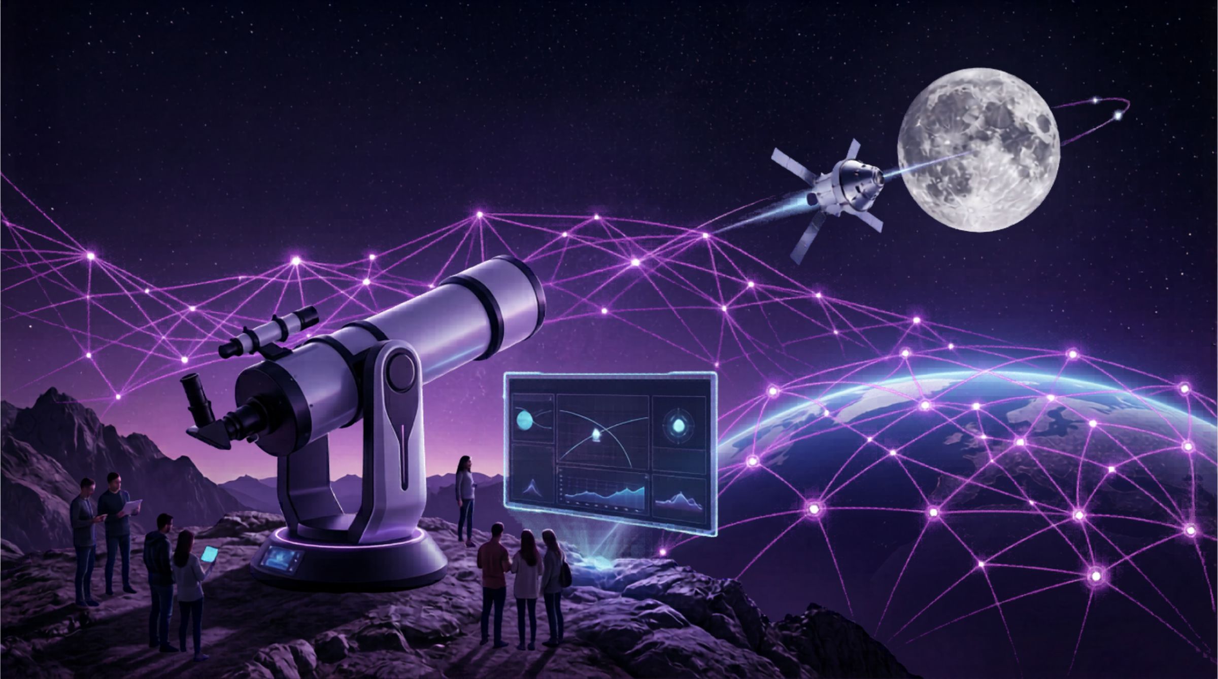 As SkyMapper launches the and opens SkyViewer to the public, Artemis II offers a powerful demonstration of what a globally connected telescope community can do: observe, secure, and share the sky in real time. Across the mission, NASA’s Deep Space Network will communicate with Orion by radio, while ground-based optical observers around the world will take on a different challenge altogether, visually tracking a spacecraft on its way to deep space. This is where SkyMapper’s growing network of connected telescopes and public-facing observing tools come into focus and positions SkyMapper as a decentralized global telescope network and SkyViewer as the interface to control telescopes, track satellites, and capture images.
