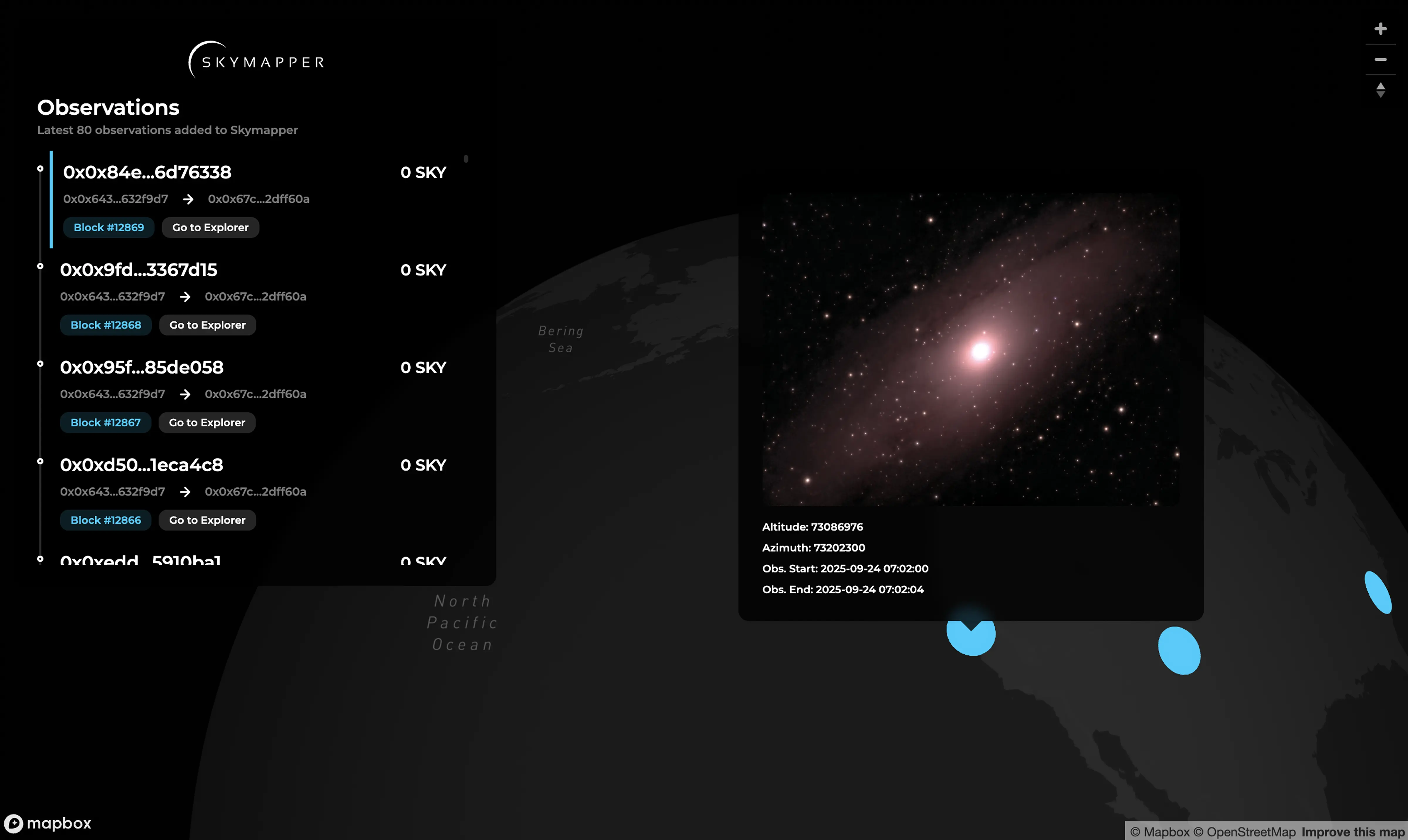 Captured by SkyMapper’s global network of telescopes, these images showcase the beauty of deep space, satellites, and transient celestial events. All images are contributed by our community and verified on the blockchain. Each photo is more than a snapshot; it’s a piece of a shared journey to map and understand the universe together.